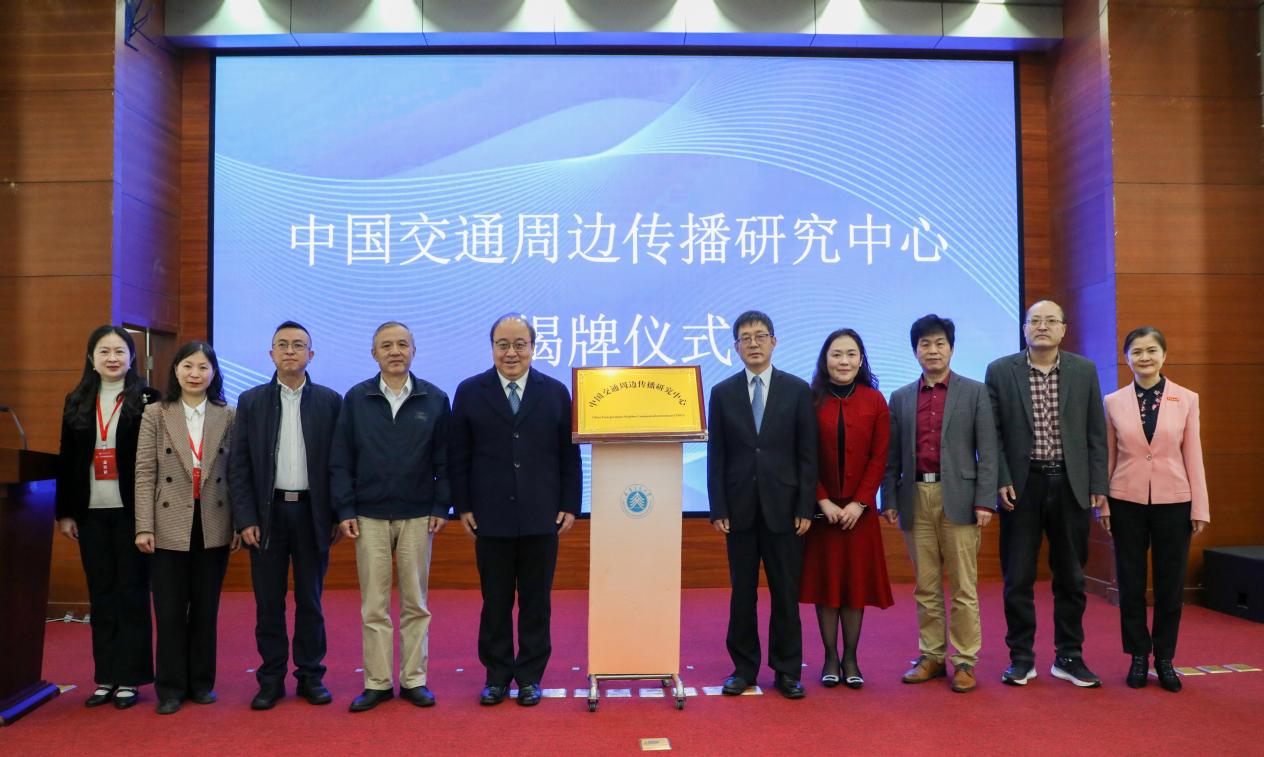 致辞结束后,现场举行了中国交通周边传播研究中心揭牌仪式。这一聚焦交通与周边传播融合发展的专业研究平台正式成立,将为交通领域周边传播相关领域的学术研究、人才培育与实践应用搭建起重要桥梁。