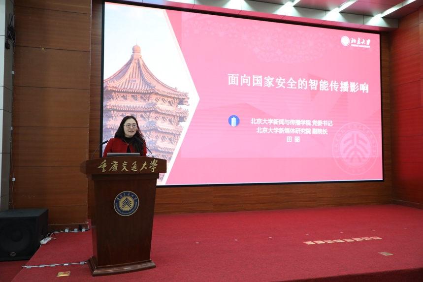 北京大学新闻与传播学院党委书记田丽教授做主题报告。