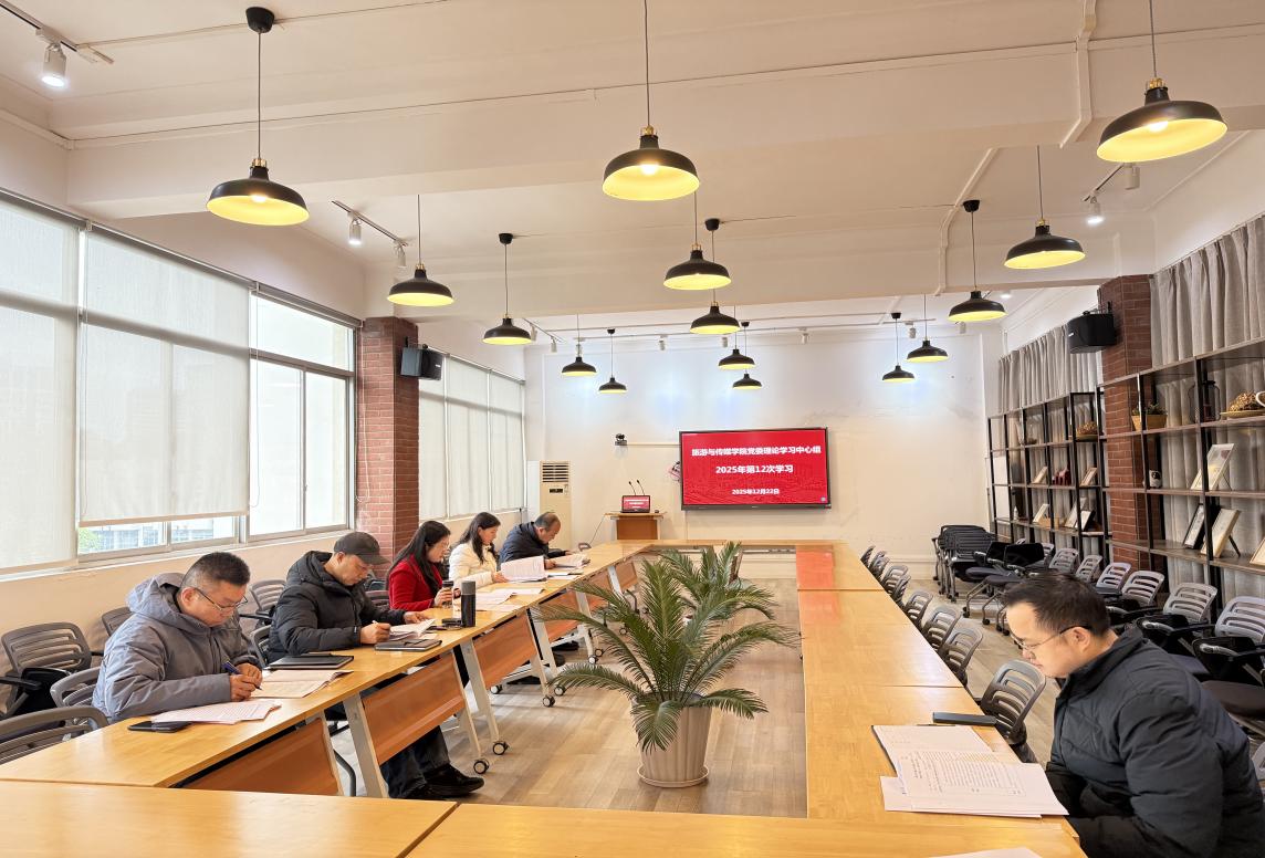 12月22日,旅游与传媒学院党委理论学习中心组在南岸校区10414会议室举行2025年第12次集体学习,围绕习近平总书记近期重要讲话精神、习近平总书记在中央经济工作会议上的重要讲话开展专题学习与深入研讨。学院党委理论学习中心组全体成员参加学习,会议由学院党委书记徐园媛主持。