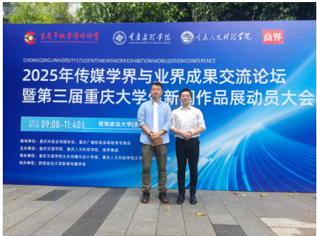2025年9月26日,“2025传媒学界与业界成果交流论坛暨第三届重庆大学生新闻作品展动员大会”在西南政法大学渝北校区成功举行。重庆交通大学旅游与传媒学院院长助理、广播电视学系主任王熠珏老师作为嘉宾应邀出席本次盛会,与来自行业协会、市内外高校及行业媒体的60余位领导、专家和学者共聚一堂,共商传媒发展大计。