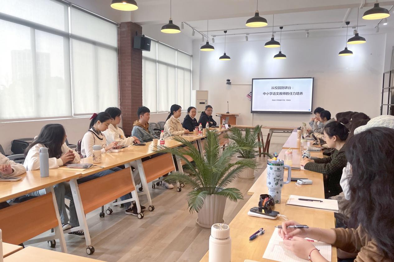 整场讲座内容丰富、逻辑清晰,既有理论高度,又贴近教学实际。苟晓东老师的教学语言生动,他从专业化的角度为同学们明晰了语文教师从校园走上讲台的成长路径,深化了同学们对语文教师这一职业的理解,同时也为将来准备从事语文教育的国际中文教育硕士生指明了努力的方向。同学们纷纷认为,这是一场兼具实用性、实践性和趣味性的讲座。