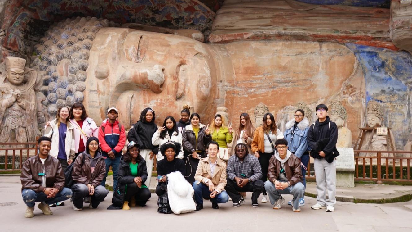 2025年12月2日,重庆交通大学旅游与传媒学院联合国际教育学院,组织2023、2024级旅游管理(全英文班)二十多名留学生赴世界文化遗产大足石刻宝顶山景区,开展了一场别开生面的旅游市场营销实践活动。此次活动旨在通过沉浸式文化体验,深化留学生对中国文旅资源开发与国际化传播的实践认知。
