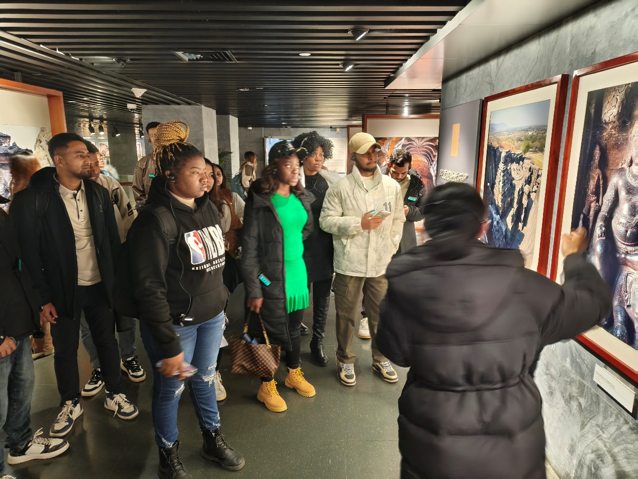 在宝顶山景区,留学生们在专业讲解员带领下,参观了大足石刻博物馆,现场观摩石刻造像,系统了解大足石刻作为唐宋时期宗教艺术巅峰的造像技艺与文化内涵。通过实地考察,学生们不仅掌握了石刻艺术的历史背景与保护现状,更从游客动线设计、多语种导览服务等细节,剖析了景区如何通过文化IP活化提升国际游客体验。