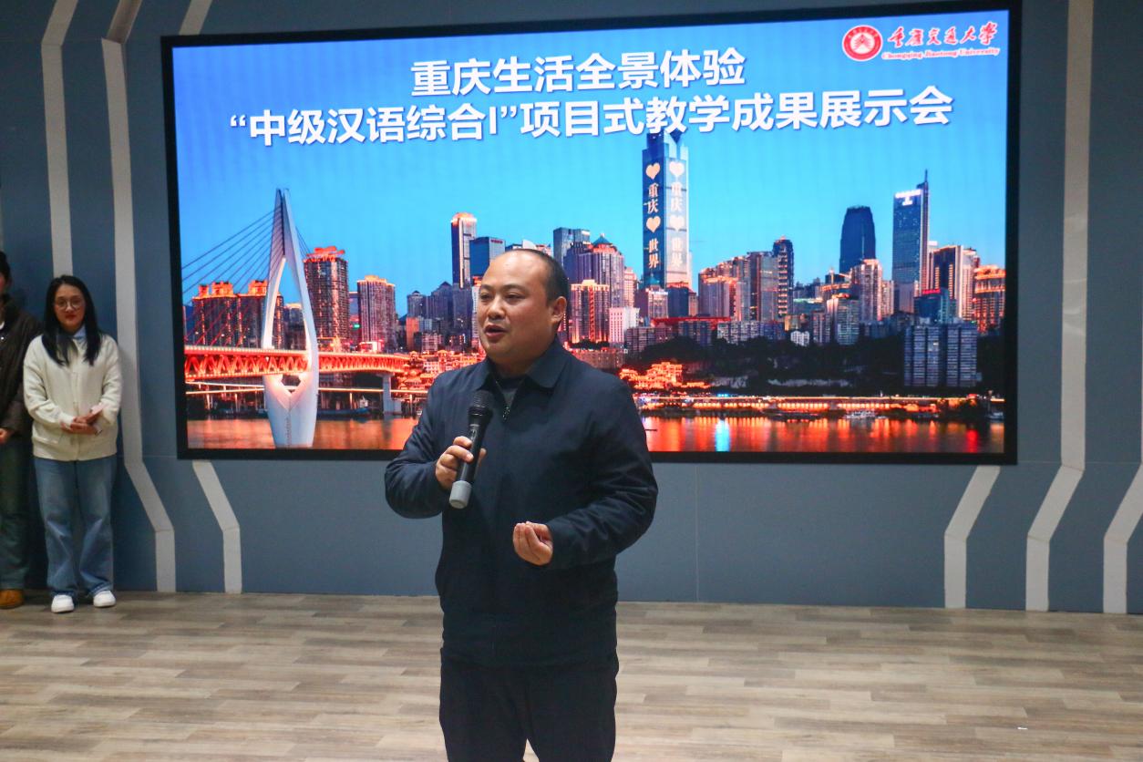 12月25日下午,“中级汉语综合I”项目式教学成果展示会于10401教室顺利举行。旅游与传媒学院副院长樊信友,教师代表沈林、蒋霞、唐海艳等出席活动;汉语国际教育专业2024级全体留学生及国际中文教育专业部分硕士研究生共同参与。