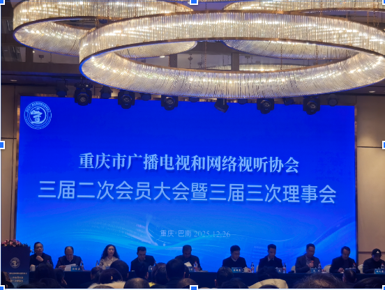 2025年12月26日,重庆市广播电视和网络视听协会三届二次会员大会暨三届三次理事会议在渝顺利召开。我院院长助理、新闻与传媒系主任王熠珏副教授应邀参会,与来自全市广播电视和网络视听领域的行业主管部门领导、协会会员、企业代表及兄弟院校专家学者齐聚一堂,共同探讨行业发展大计。此次参会是我院主动对接行业需求、融入区域传媒生态的积极举措,也为推动学科专业转型升级、促进专业建设与行业实践深度融合提供了重要契机。