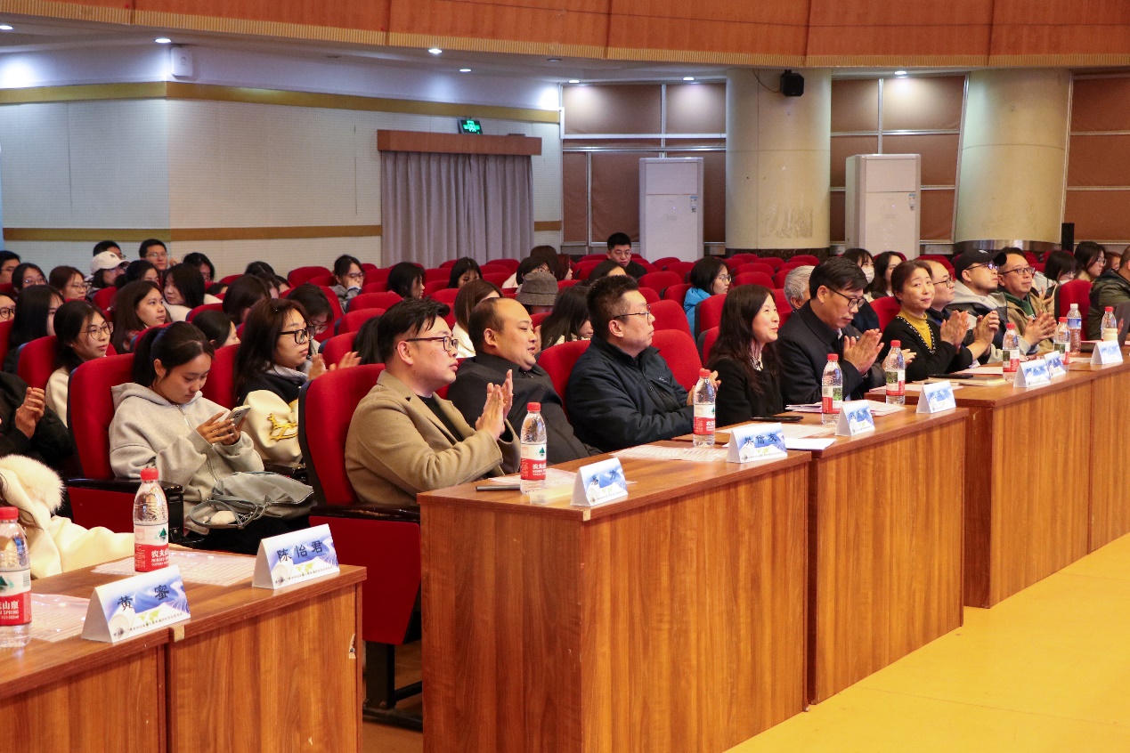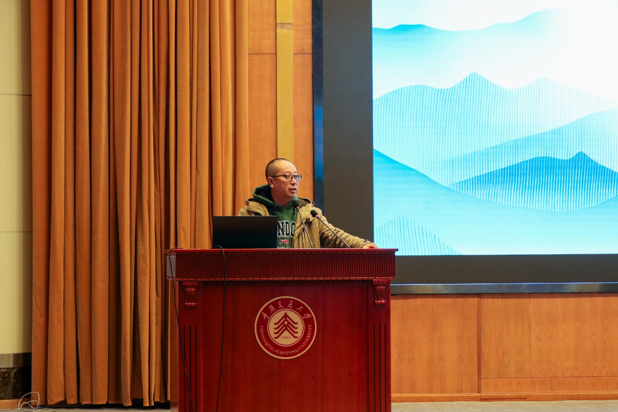紧接着,大广赛重庆赛区组委会杨定强秘书长走上讲台。他对重庆交通大学旅游与传媒学院的大力支持表示诚挚感谢,并希望师生们能在四位专家的分享中汲取知识与经验,在本届大广赛中赛出成绩、有所收获。