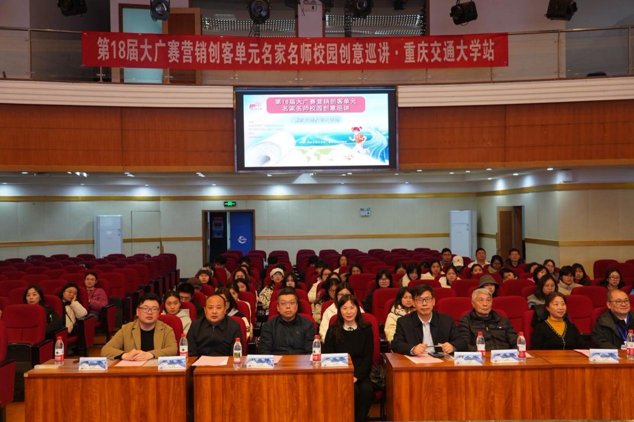 2026年3月17日下午,第18届全国大学生广告艺术大赛(简称“大广赛”)名家名师校园创意巡讲活动在重庆交通大学南岸校区第二教学楼四楼多功能厅隆重举行。本次活动由全国大学生广告艺术大赛组委会主办,重庆交通大学承办,吸引了包括重庆工商大学、四川外国语大学、重庆外语外事学院等十余所重庆高校师生,共同聆听行业专家与学界名师的精彩分享,现场气氛热烈,创意涌动。