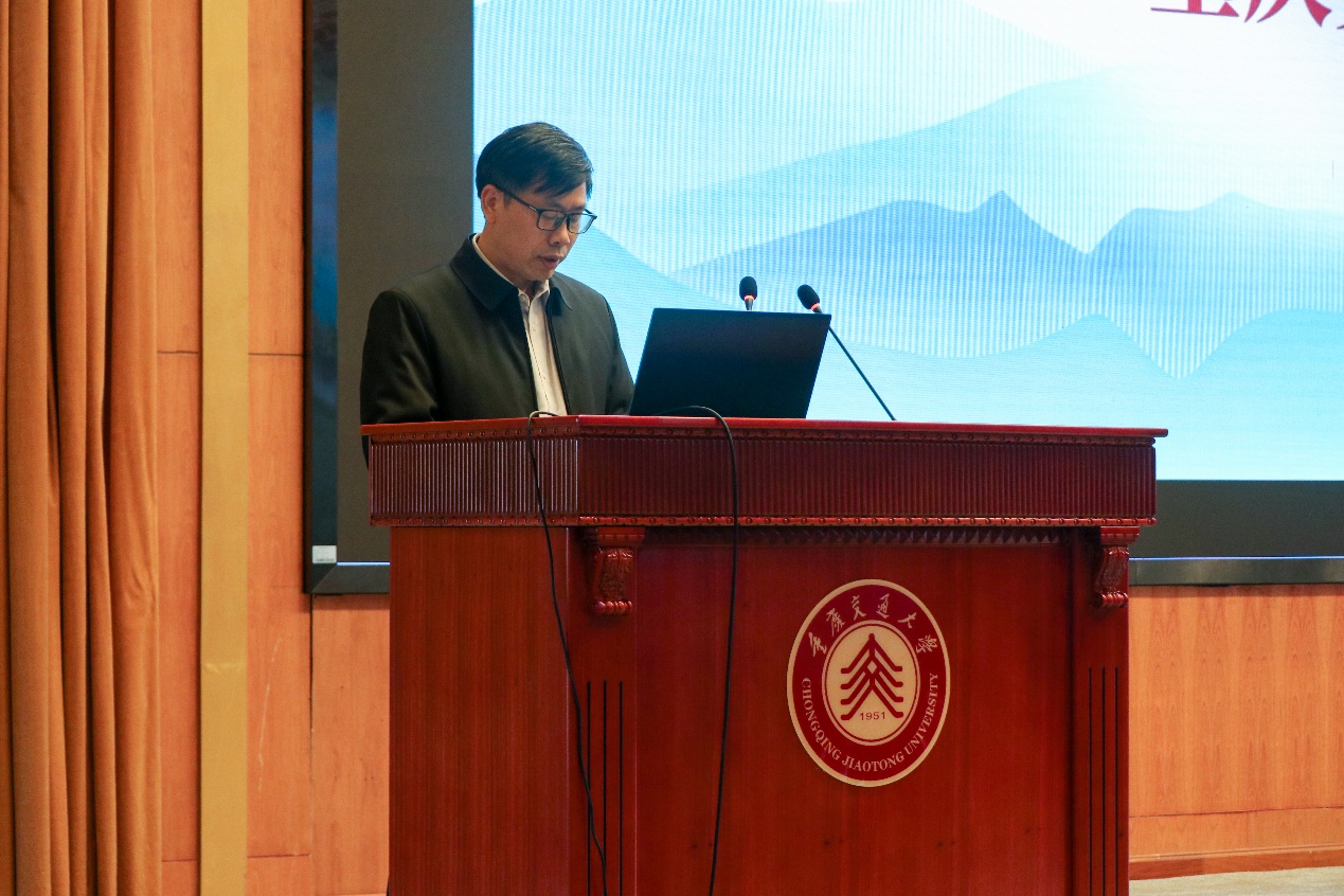 当日14:00,本次巡讲活动正式拉开帷幕。主持人依次介绍莅临现场的各位领导与特邀嘉宾,全场师生以热烈掌声表示诚挚欢迎。重庆交通大学教务处何小兵处长率先发言。他指出当前学校正全面推进教育教学数字化转型,教务处始终坚持以赛促教、以赛促学、以赛促创,并强调大广赛不仅是检验教学成果的“练兵场”,更是跨学科融合创新的“催化剂”,希望同学们打破专业壁垒,将新技术、新理念融入创意实践,在大广赛的舞台上锤炼专业能力,展现创新风采。