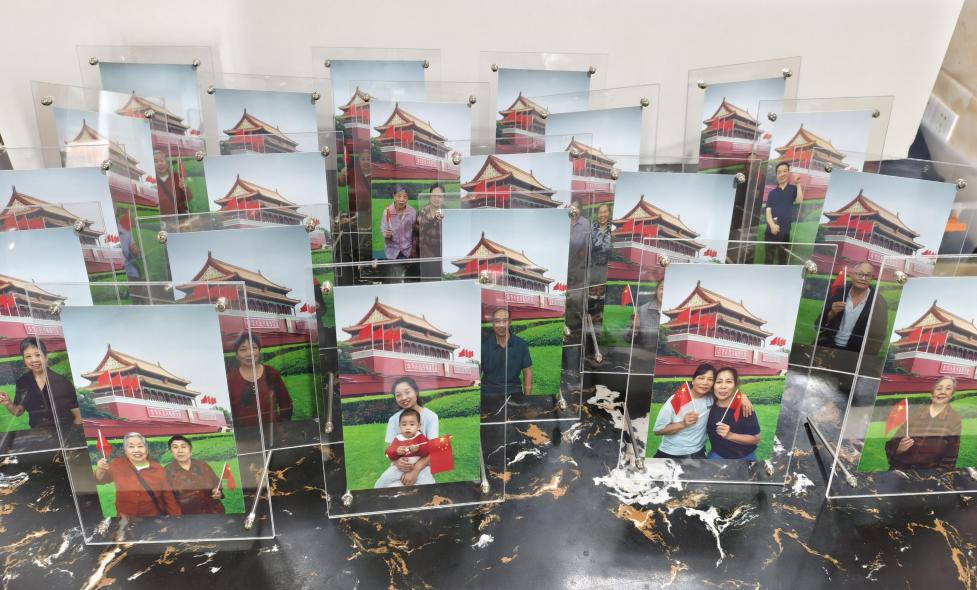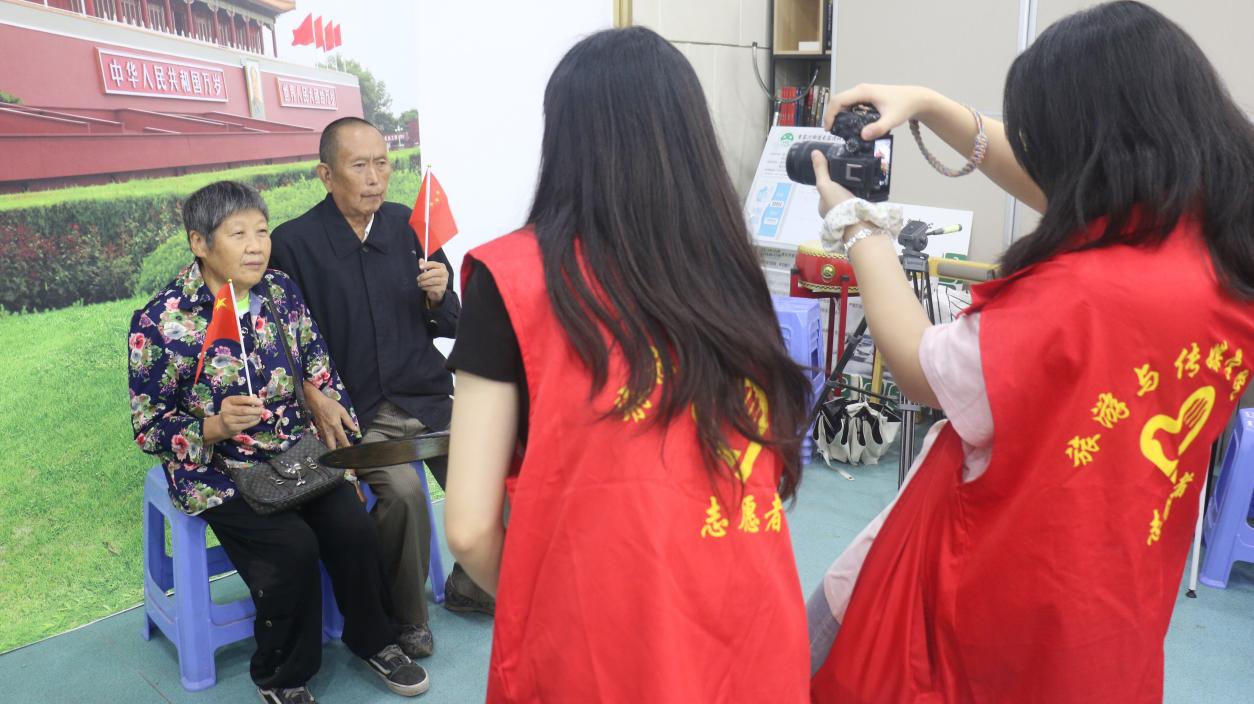 社区活动室变身为特别的“摄影棚”。庄严的天安门背景幕布前,青年党员们化身贴心“摄影师”与“服务员”。“婆婆慢点,我扶您。”“爷爷笑一笑,真精神!”他们耐心搀扶老人,细致整理衣装、佩戴小国旗,温暖的话语消除着拘谨。镜头前,即使步履