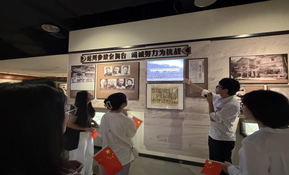 走进红岩革命纪念馆,研究生党支部书记谭自慧带领党员们观摩馆内图片、文物。展区内,周恩来、董必武等老一辈无产阶级革命家使用过的实物、《新华日报》原始报刊、叶剑英亲笔题词等珍贵展品生动重现了先辈们身处黑暗却不断寻找光明的革命历史。