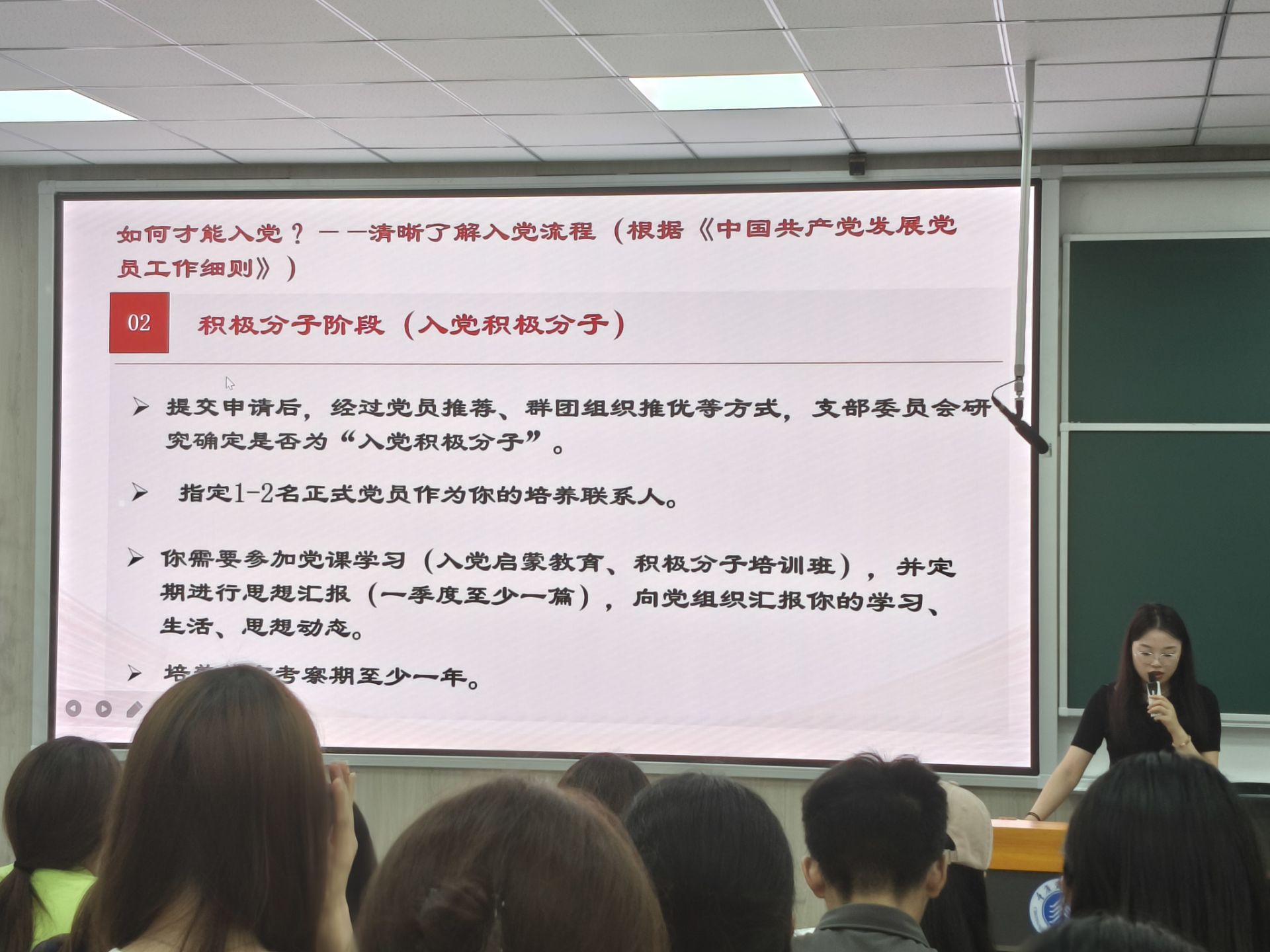 会上,吴艾凌以“提升思想境界,增强责任担当”为主题,围绕新时代青年的使命担当与个人发展展开讲解。她指出,树立正确的人生目标对大学阶段的成长至关重要,鼓励同学们以优秀党员为榜样,积极追求进步,勇担时代责任。吴艾凌系统阐释了中国共产党的性质、宗旨以及党员的权利与义务,详细梳理了从递交入党申请书到成为正式党员的完整流程,引导同学们端正入党动机,将个人理想融入国家发展大局,以实际行动践行“请党放心,强国有我”的青春誓言。