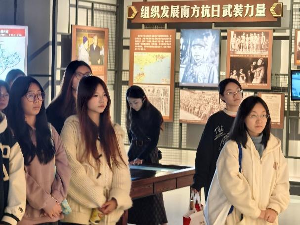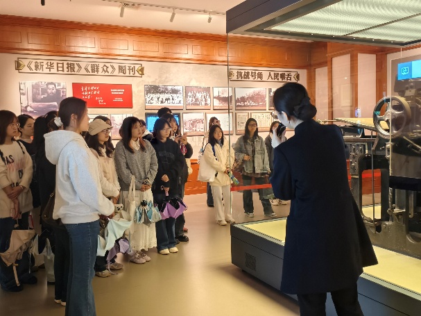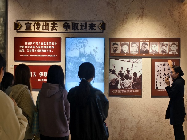 此外,学生们还系统参观了“抗日民族统一战线的形成”《新华日报》与《群众》周刊展区、“加强国共军事合作”等重要历史陈列,通过丰富的文物史料,全面了解了中共中央南方局在国统区开展的艰苦卓绝的斗争历程,进一步加深了对红岩精神历史背景与实践根基的理解。参观现场,参加培训学习的党员干部认真聆听,感悟革命先辈艰苦卓绝的革命历程,接受精神洗礼和党性教育。学院精心用红色资源打造的情景党课“声”临其境,入脑入心。2024级入党积极分子陈双表示:“通过一幅幅字画、一句句精彩讲解,我们青年大学生的内心受到深度冲击。作为学生干部,要把学习内容转化为实实在在提升自我、争先创优的实际行动。”