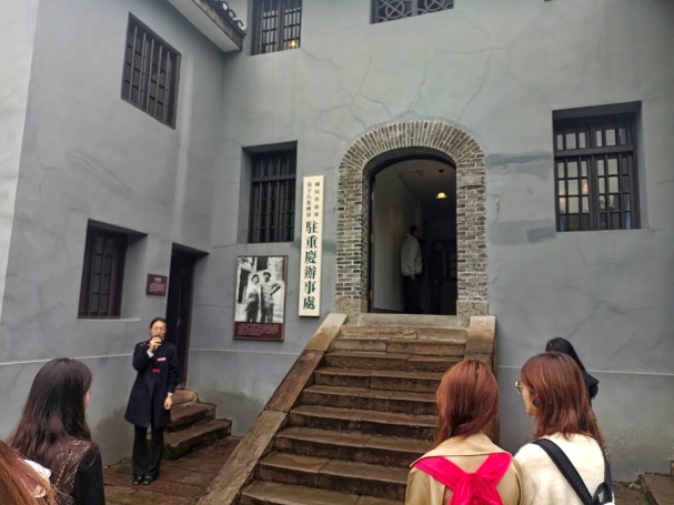 在八路军驻重庆办事处旧址,学生们实地参观了这座抗战时期承担着联络协调、情报传递、人员接待等重要职能的三层建筑。木质楼梯、简陋办公桌椅、老式发报机等复原场景,生动再现了当年革命先辈在复杂险恶环境中坚持工作的真实状况。讲解员详细介绍了南方局领导人在这栋建筑里开展统战工作的历史,让学生们深刻感受到革命先辈的智慧与勇气。该旧址作为红岩精神的重要发源地,至今仍传递着坚定的信仰力量。