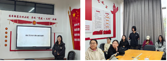 会上,研究生党员覃喜喜带领全体党员深入学习了习近平总书记关于廉洁文化建设的重要论述。她系统阐释了廉洁文化建设作为“反腐败斗争基础性工程”的战略意义,并针对《中国共产党廉洁自律准则》,结合研究生党员的学习与成长实际,重点剖析了“四个必须”和“八条规范”的核心内涵。她认为:“《准则》不仅是党员干部的行为规范,更是我们青年党员的人生航标。只有从一开始就严守纪律红线,才能在未来的学术生涯和职业道路上行稳致远。”
