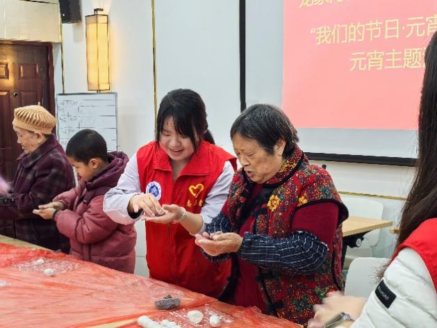 此次元宵主题活动以“元宵庆团圆”为主题,设置了包汤圆、文艺表演、慰问独居老人等环节,营造了喜庆祥和的节日氛围。活动现场,社区老人与志愿者们欢聚一堂,揉面团、包馅料。在欢声笑语中共同制作象征团圆的汤圆。