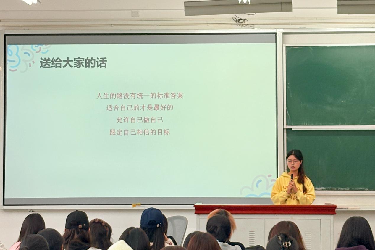面对学业压力,两位高年级学姐微笑着勉励同学:“竞赛成果多集中在大三,大一大二应夯实基础,避免焦虑。”“人生没有标准答案,允许自己成为自己。”同学们也回以热烈真挚的掌声。