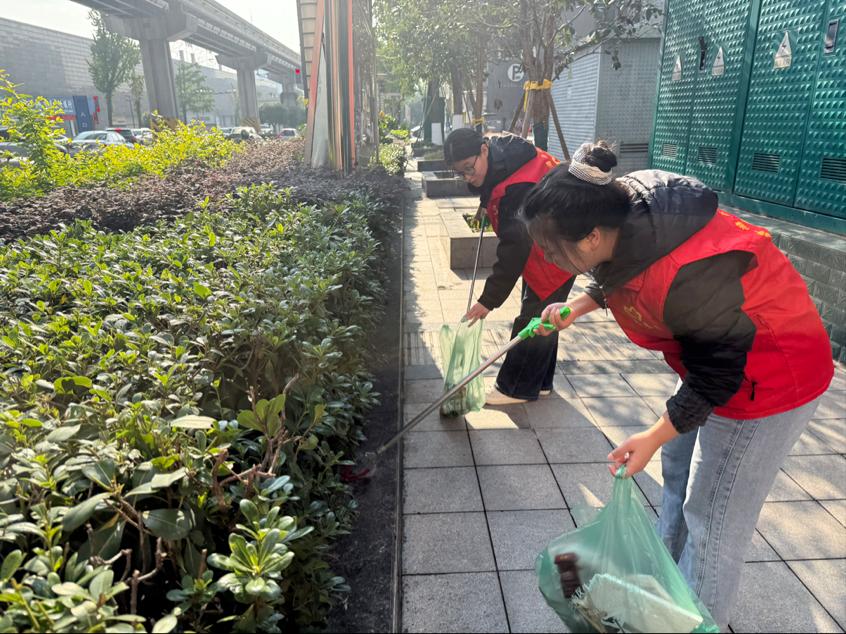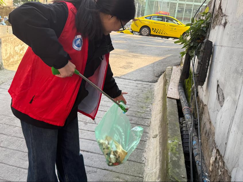 此次活动中,五名学生党员与社区干部并肩,在渝南大道附近开展捡拾垃圾志愿服务。抵达现场后,大家领取垃圾袋和夹子,对人行道、绿化带、公交站周边、路口转角等重点区域进行全面清理,集中捡拾烟头、塑料瓶、纸屑和隐藏在草丛中的细小垃圾,以实际行动改善市容环境,助力文明城市创建。