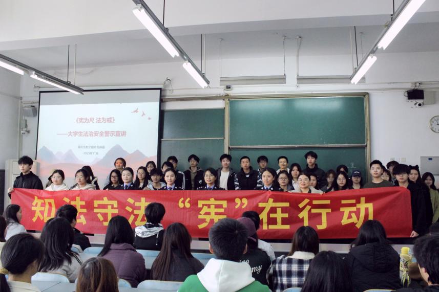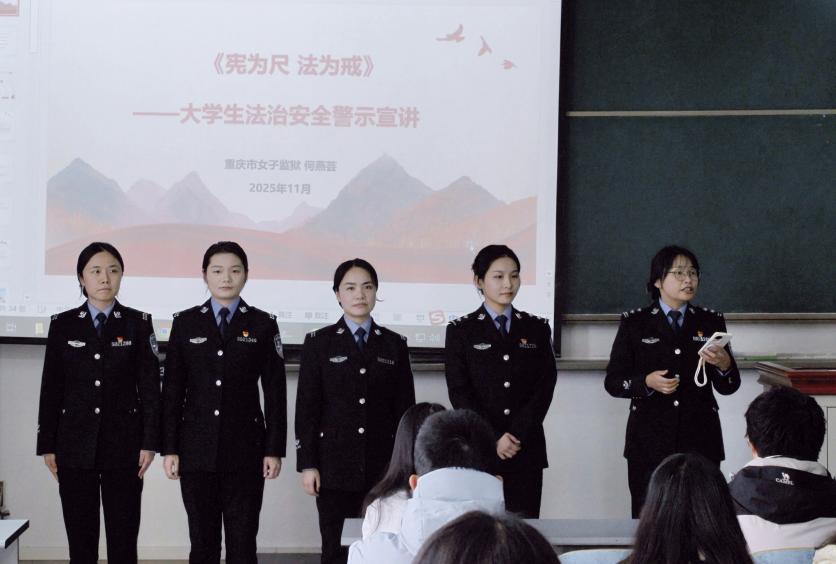 为深入学习宣传宪法,弘扬宪法精神,增强学生的法治观念,在国家宪法日来临之际,重庆市女子监狱的五位警官走进旅游与传媒学院宪法知识课堂。由何燕芸警官作为主讲人,用鲜活的案例“现身说法”,为同学们厘清宪法权利与刑法边界,敲响青春警钟,让宪法知识走进课堂、融入内心。