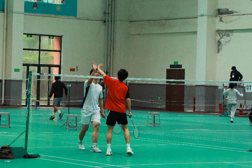 男子双打,李锐钖与钟沅辛组合展现出十足默契。面对对手频繁的吊球战术,两人迅速分工:一人紧盯前场封网拦截,一人退守后场把控节奏,引得场边观众阵阵喝彩,虽最终未能扭转战局,却也虽败犹荣。他们表示:“通过这次羽球赛,我们更加懂得了什么是团队合作精神。”