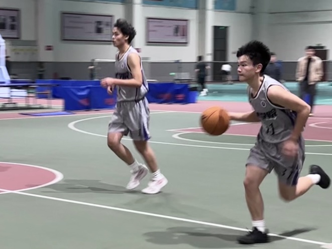 旅传学院的球员们迅速进入状态,展现出强劲的攻势。由旅传学院球员向俊杰、彭翔、孙财雨航组成的首发阵容配合流畅,迅速掌控场上节奏。旅传学院球员彭翔与向俊杰连线默契,开场不久便连中三球,孙财雨航也添上2分。