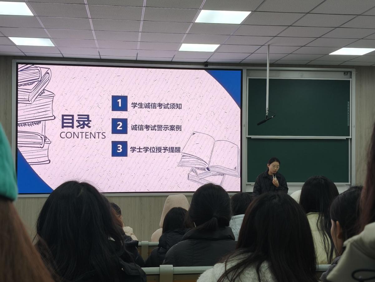 此次考前诚信教育大会既敲响纪律警钟,又送上实用指导与暖心关怀,让诚信应考理念入脑入心。学院把诚信教育融入日常管理,贯穿学生成长全程,持续营造“诚信立身、实干求知”的优良学风,为学生成长成才保驾护航。