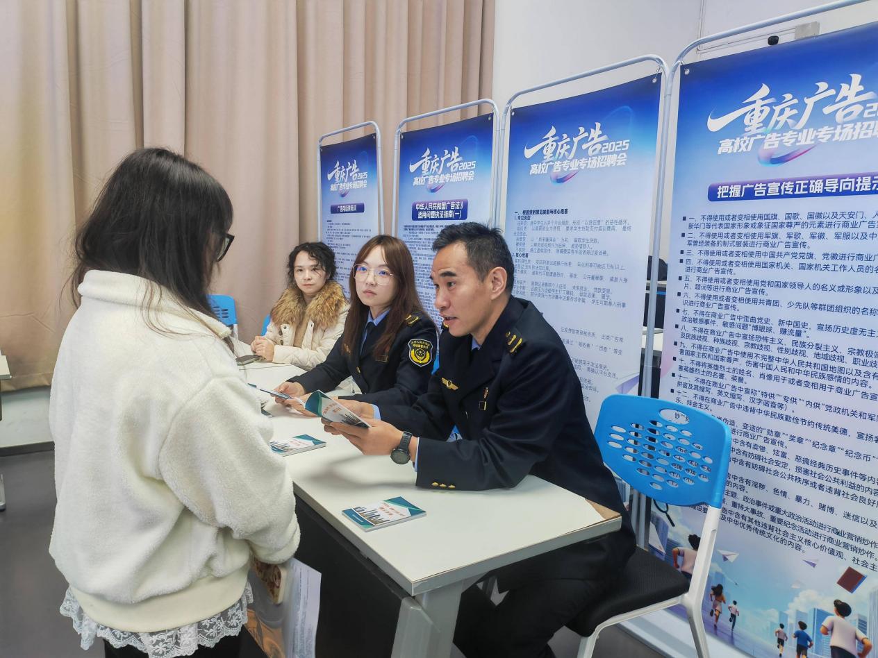 据佘红霞介绍,市场监管局在此次招聘会筹备阶段就提前介入,指导协会和高校开展企业资质审核、岗位需求调研等工作,确保参会企业质量与岗位匹配度。现场还设置了广告法规咨询台,市场监管干部现场解答学生和企业关心的法律问题,发放宣传资料200余份。