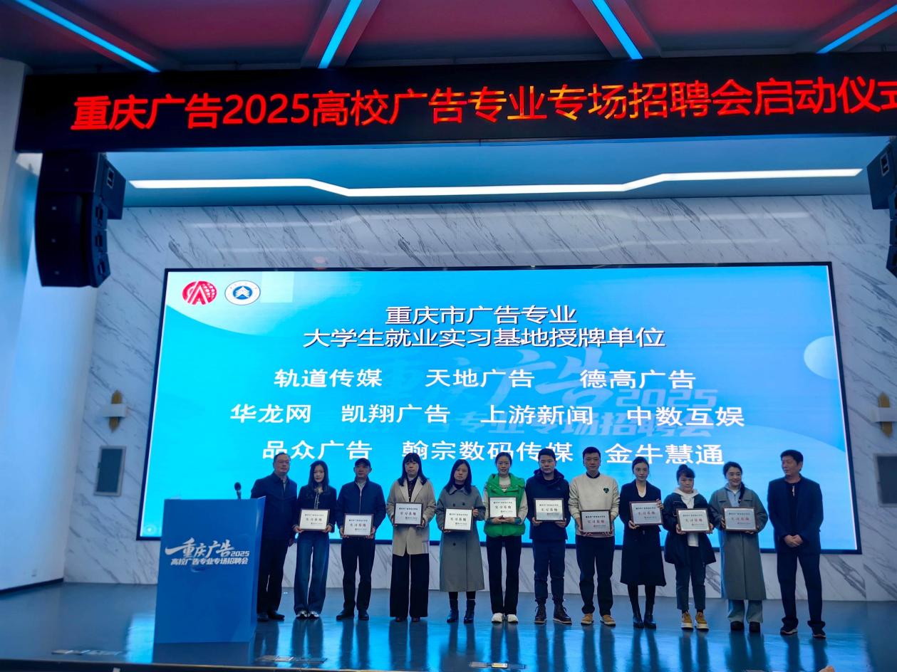 重庆交通大学旅游与传媒学院与重庆市广告协会现场签署产学合作协议,20家重庆市广告协会会员企业获授“重庆市广告专业大学生就业实习基地”牌匾。“这份协议不仅是一纸文书,更是校企协同育人的郑重承诺。”马晟坤在签约仪式上表示,“我们将以此为契机,共建实习基地,共研行业课题,共育专业人才。”