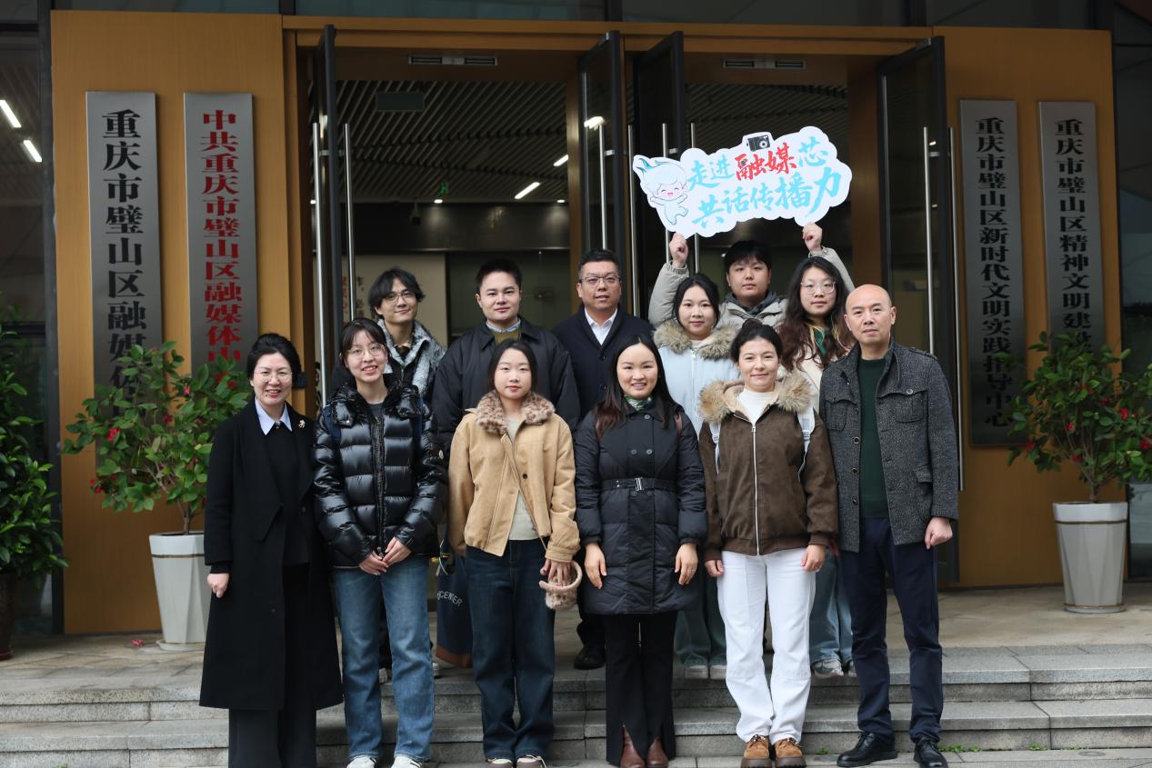 12月9日,重庆交通大学旅游与传媒学院师生一行10余人走进璧山区融媒体中心开展实地调研和访企拓岗活动,旨在洞悉融媒体中心运营逻辑,掌握文旅领域与融媒体传播融合的行业发展趋势,拓展实习就业岗位。此次调研聚焦《璧山报》编辑部中央厨房运营模式、融媒体采编流程再造及“媒体+”业态创新等核心内容,助力学生实现专业理论与行业实践的深度融合。学院党委副书记马晟坤、广播电视系主任刘懿璇、毕业班辅导员肖丽群和毕业生代表参加活动。